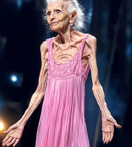 She moved slowly, carefully, stepping into the light as though entering a memory rather than a performance. She was an elderly woman, small in stature, dressed in a flowing pink gown that brushed gently against her ankles. Her hair was silver, neatly styled, and her posture carried the unmistakable marks of time. At first glance, some in the audience wondered if she had wandered onto the wrong stage.