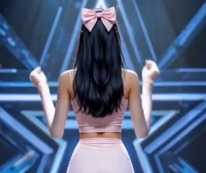 She stepped forward. A young woman dressed in soft pink, her long dark hair tied neatly with a ribbon that seemed to shimmer in the spotlight. From behind, she looked almost fragile, delicate enough to seem out of place in a world built for the bold, the loud, and the attention-grabbing. And yet, there was something undeniable in her stance. Something that told the audience she belonged here. Not just as another contestant, not just as another name on a list, but as someone whose presence demanded attention—not through volume or force, but through quiet power.